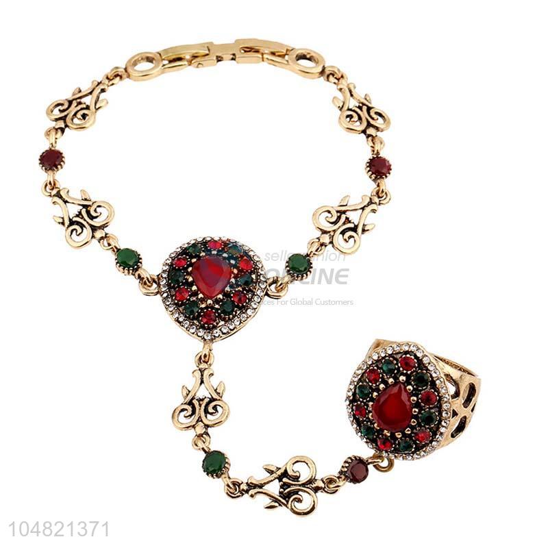Made in China rhinestone alloy bracelet with ring