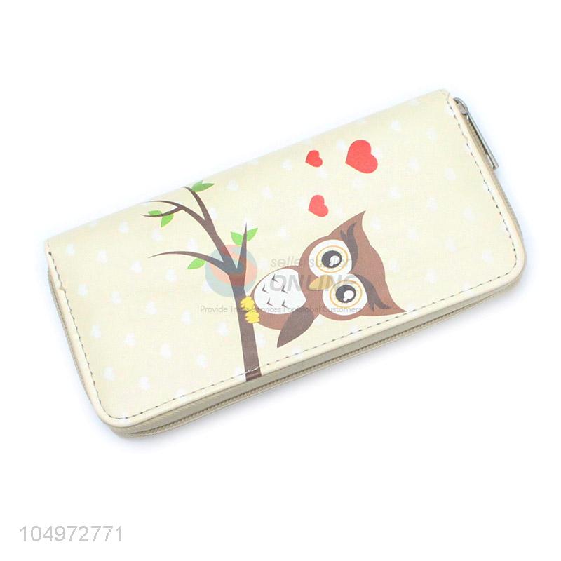Top Selling Owl Printed Leather Women Purse with Zipper