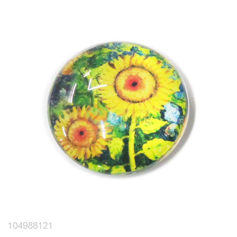 Factory directly sell round epoxy fridge magnet with sunflower pattern