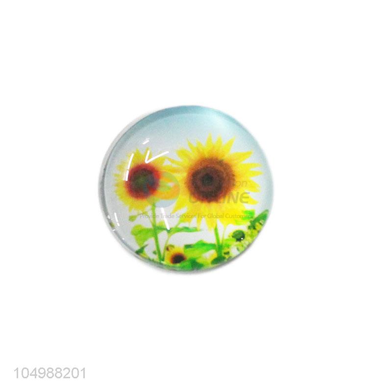 Factory supply round epoxy fridge magnet with sunflower pattern
