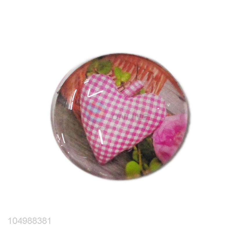 Premium quality round epoxy fridge magnet with heart pattern