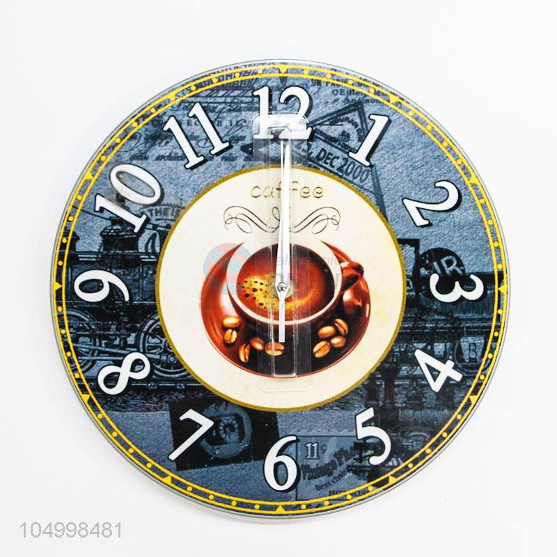 Fashion Style Round Shaped Wall Clock With Coffee Cup Decoration