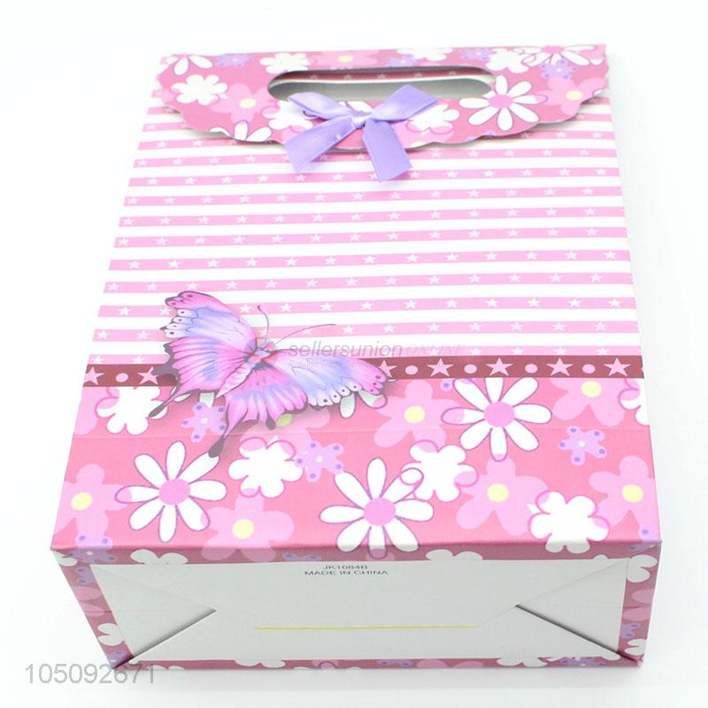 Latest Design Elegant Pink Color Flower Pattern Paper Gift Bag