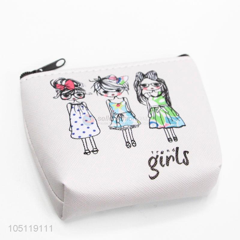 Lovely Cartoon Girl Pattern PVC Clutch Bag Small Round Coin Purse