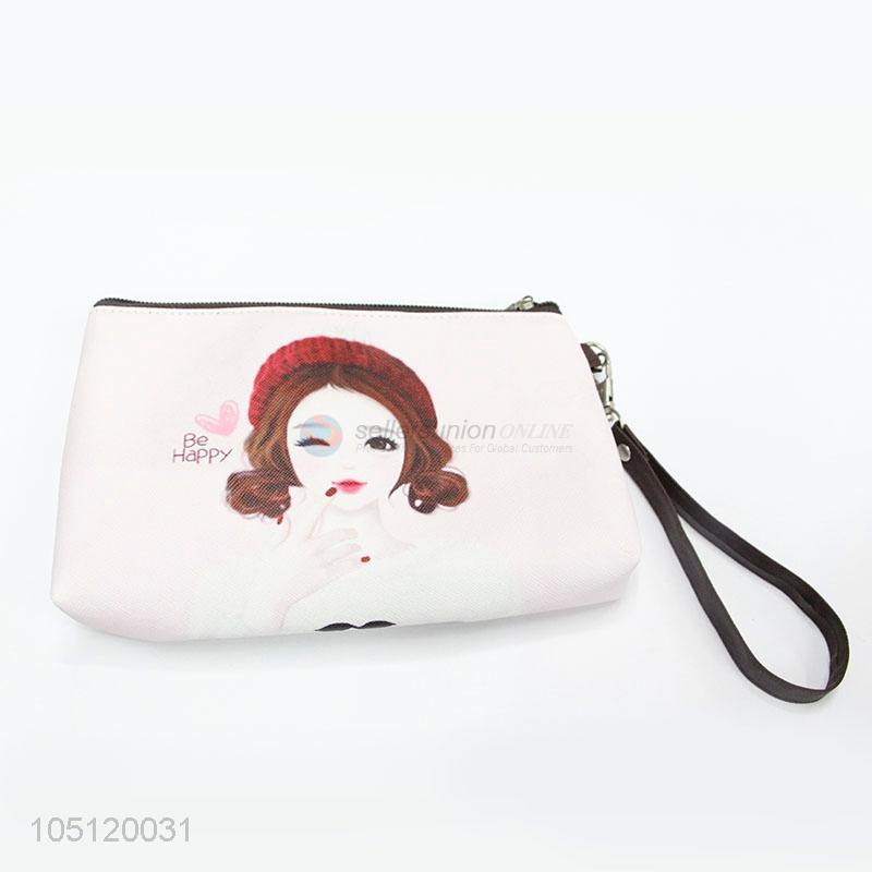 Popular Pink Color Cartoon Girl Pattern PVC Coin Purse Wallet for Sale