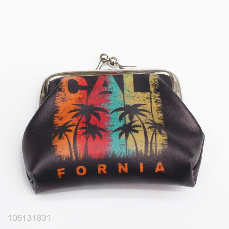 China Factory Coconut Tree Pattern PU Leather Coin Purse Small Pouch