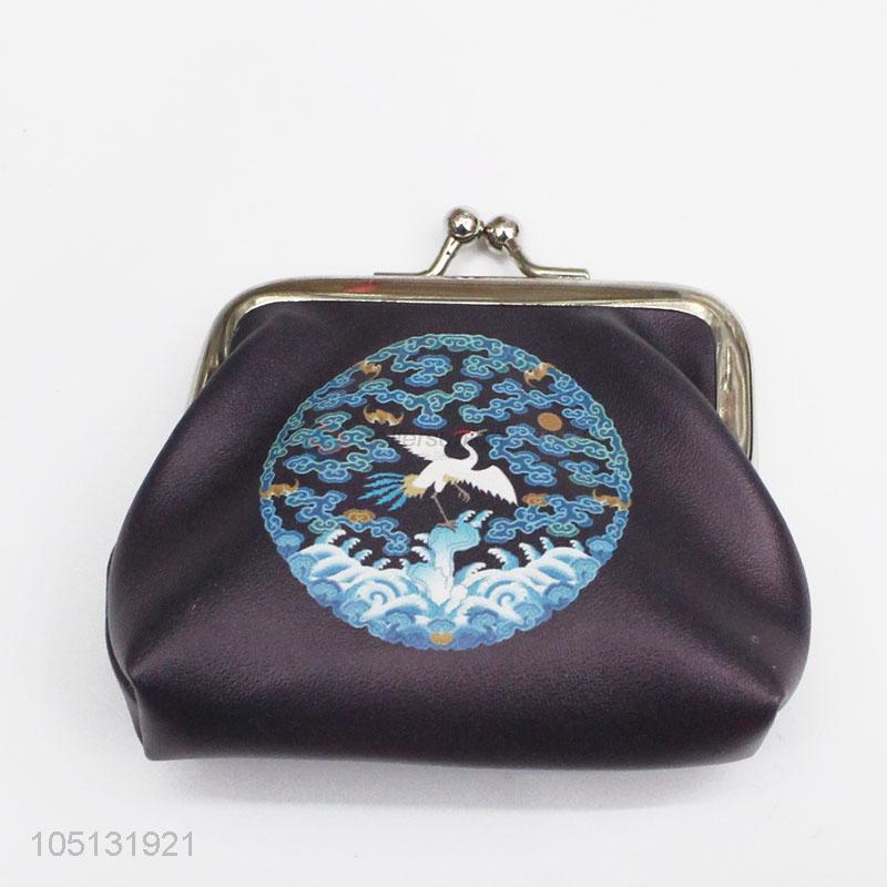 Factory Direct Black Color Crane Printed PU Leather Coin Purse Wallet