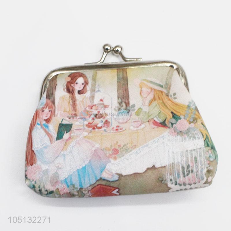 Latest Design Cartoon Girls Printed PU Leather Coin Purse for Ladies