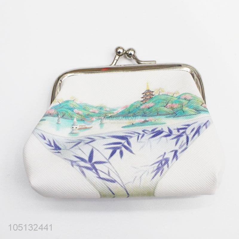 New PU Leather Mini Clutch West Lake Scenery Pattern Coin Purse