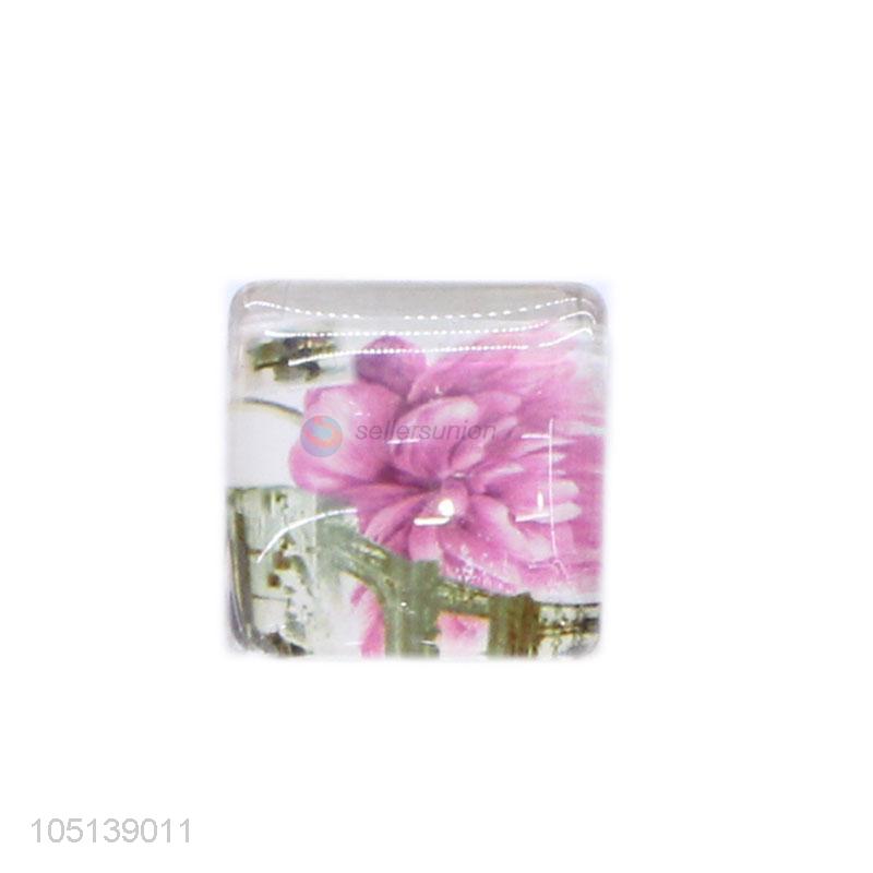 Top sale delicate square flower pattern glass fridge magnet