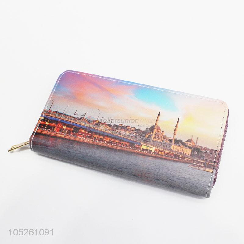 Ladies Wallet Women Famous Building Long Section Europe Zipper Wallet