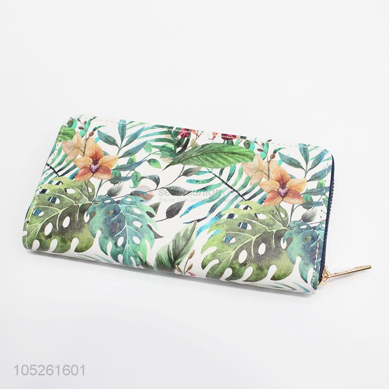 Beautiful Flower Printed Blocking PU Leather Woman Long Wallet