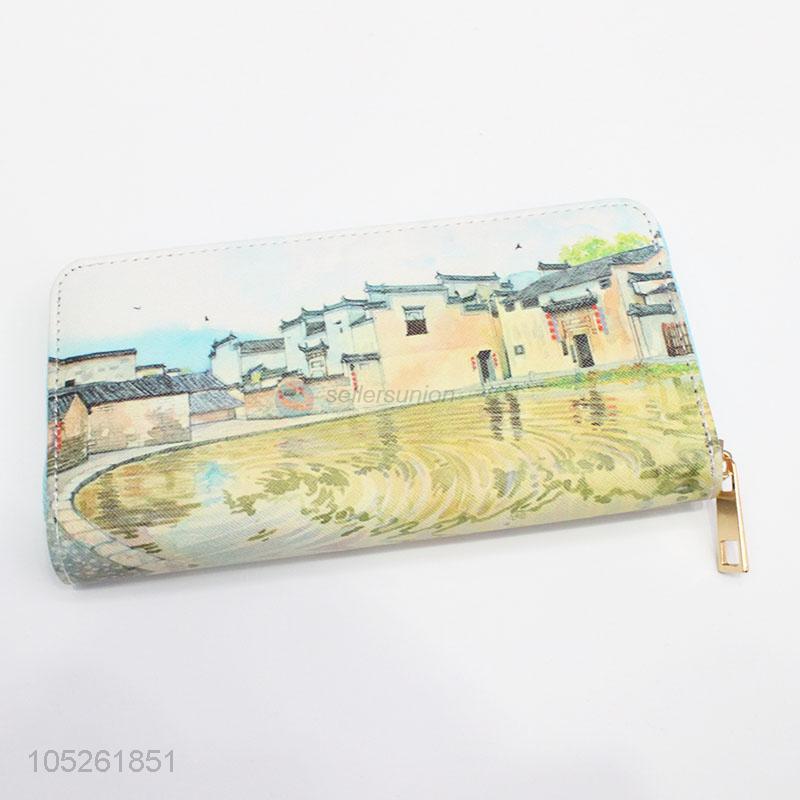 Classic Chinese Building Printed Women Wallet Card Holder Wallet