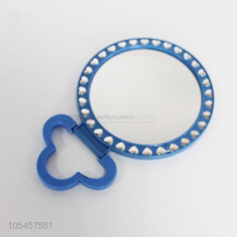 Wholesale home use plastic stand cosmetic mirror with hearts paved border