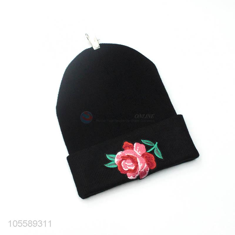 Delicate Design Rose Embroidery Knitted Hat Cuff Beanie