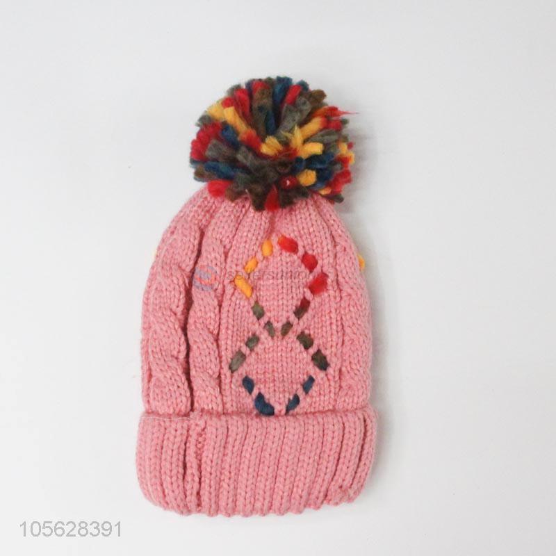 Wholesale Colorful Ladies Winter Fur Pom Pom Knitted Cap