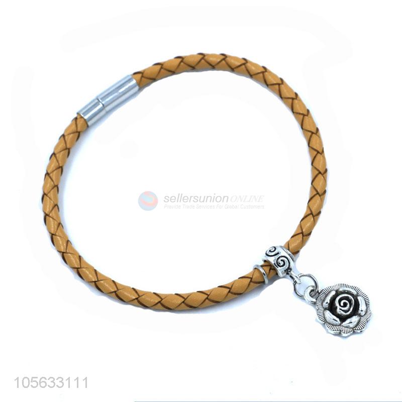 Cheap wholesale mens favor handmade retro braided rope bracelet with alloy flower
