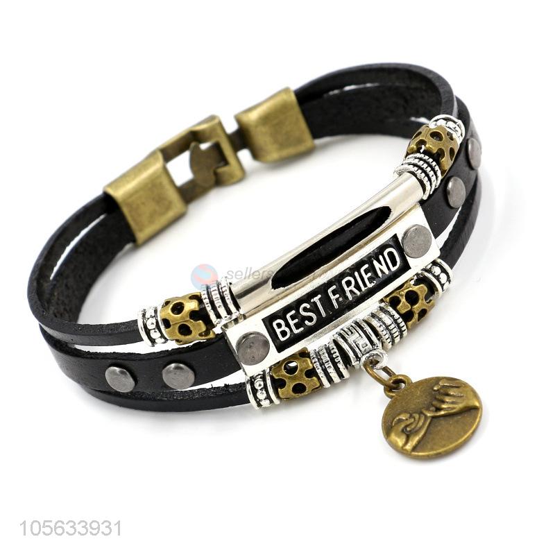Top selling handmade mens leather bracelet with retro alloy charms