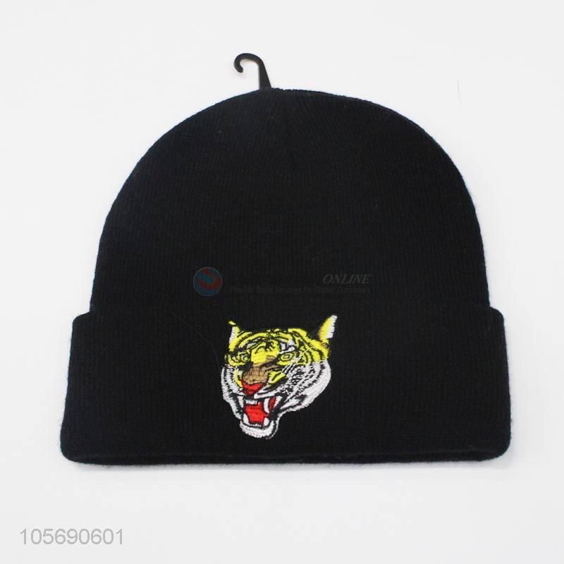 Modern Style Winter Warm Knitting Hat with Embroidery Tiger
