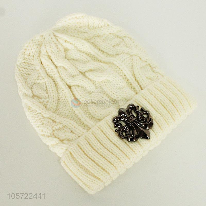 Fashion unisex winter acrylic knitting hats with decoraitve cross