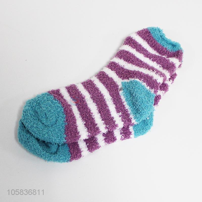 Hot selling striped fuzzy microfiber socks for adults