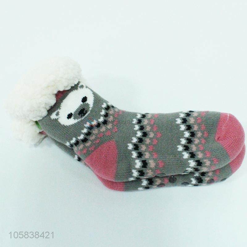 Recent design men knitted fleece slipper home acrylic socks