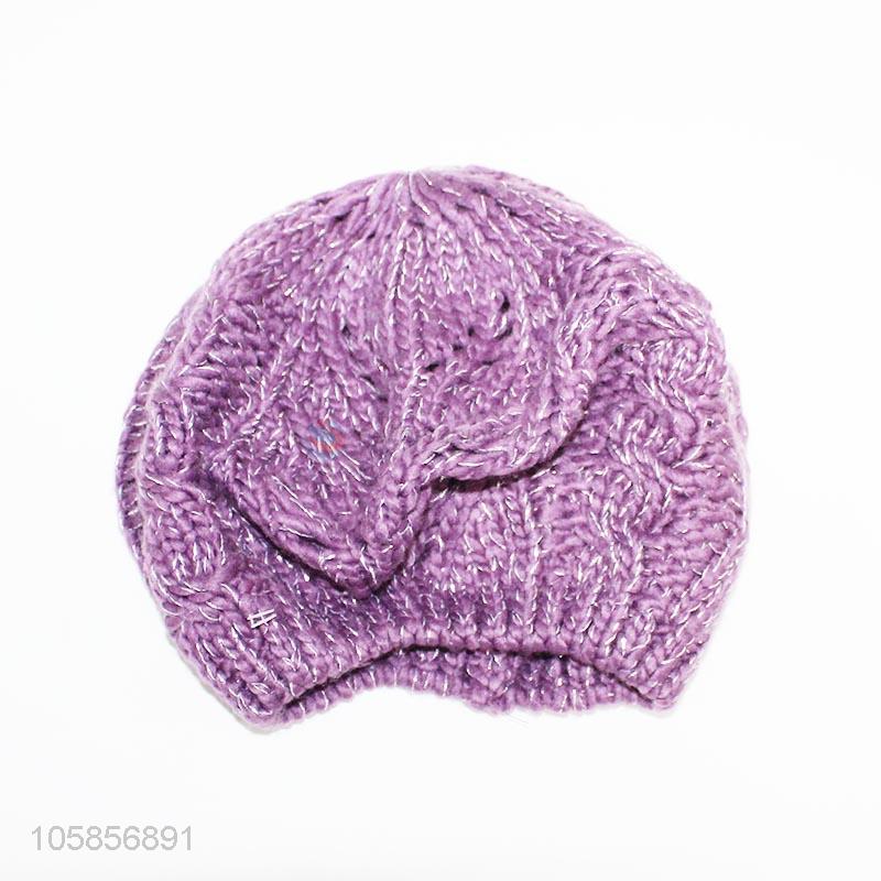Beautiful purple women winter warm knitted caps hats