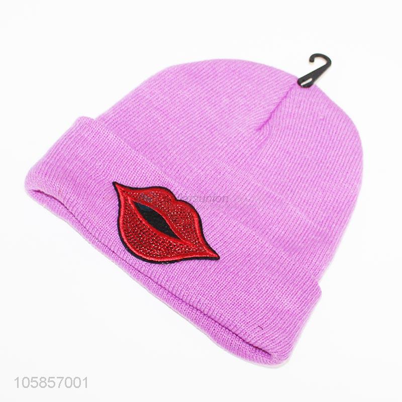 Wholesale fashion lip applique women winter knitting hat