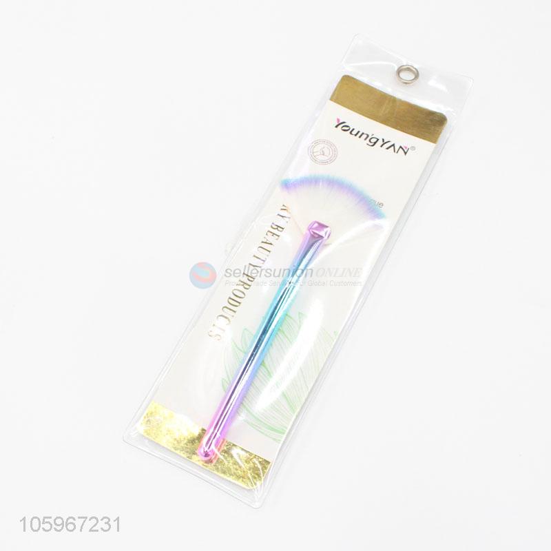 High sales colorful plastic handle makeup large fan shaped blush brush