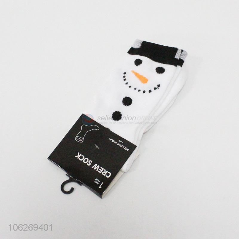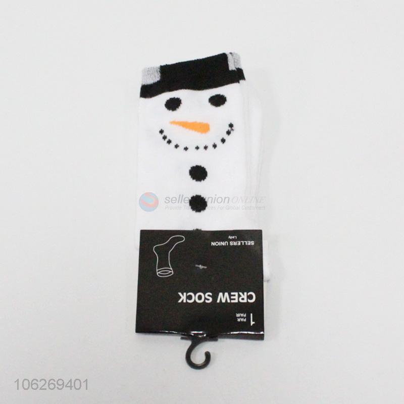 Cute design snowman pattern ladies crew socks