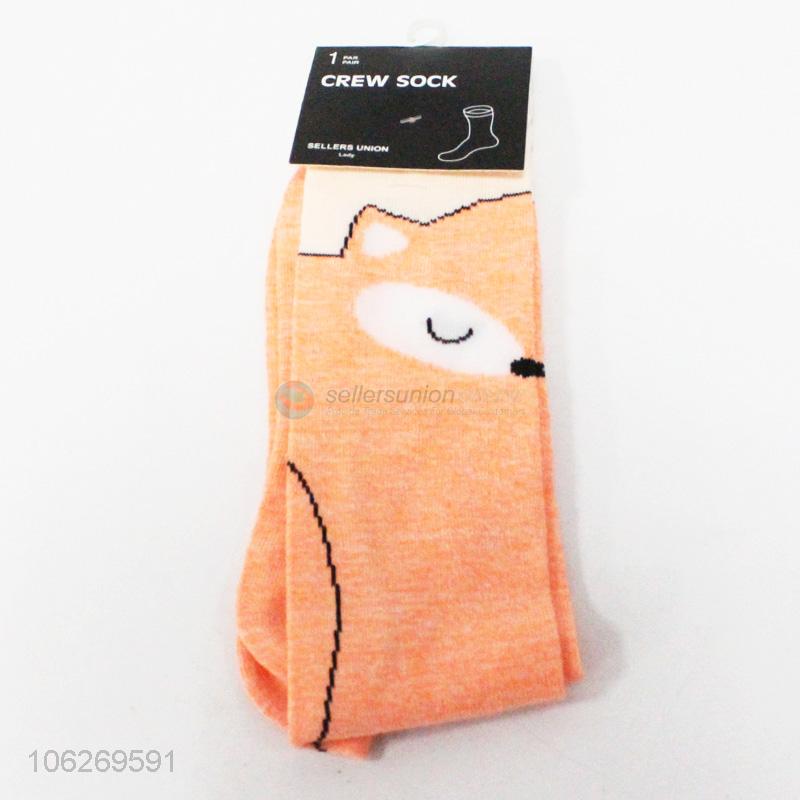 Top sale cute fox pattern women crew socks