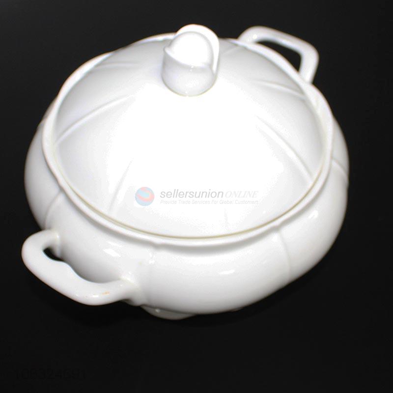 Dependable factory household ceramic soup bowl with lid and handles