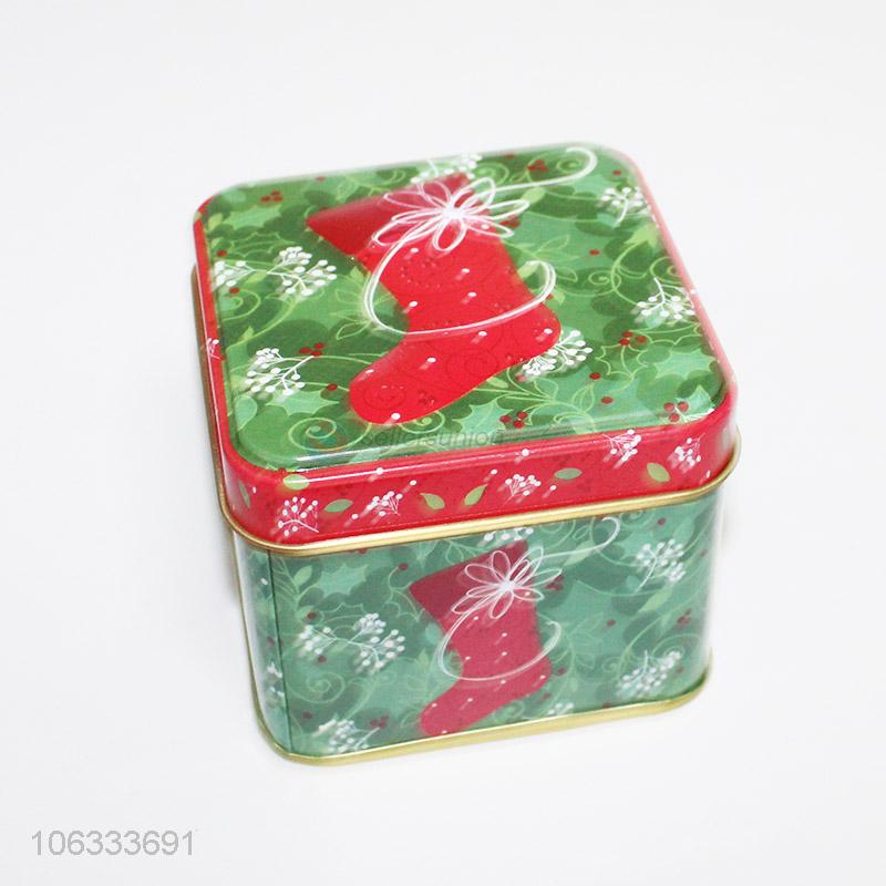 Superior quality Christmas stocking printed square iron cans