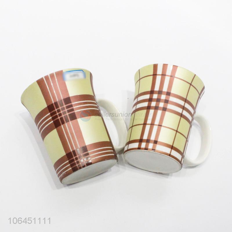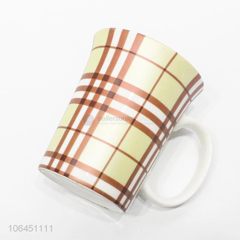 Best sale fashion plaid pattern ceramic cup with handle