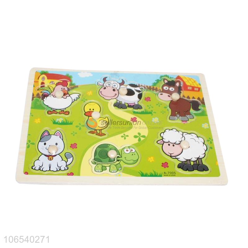 Hot sale educational toy wooden cartoon animal puzzle jigsaw for kids