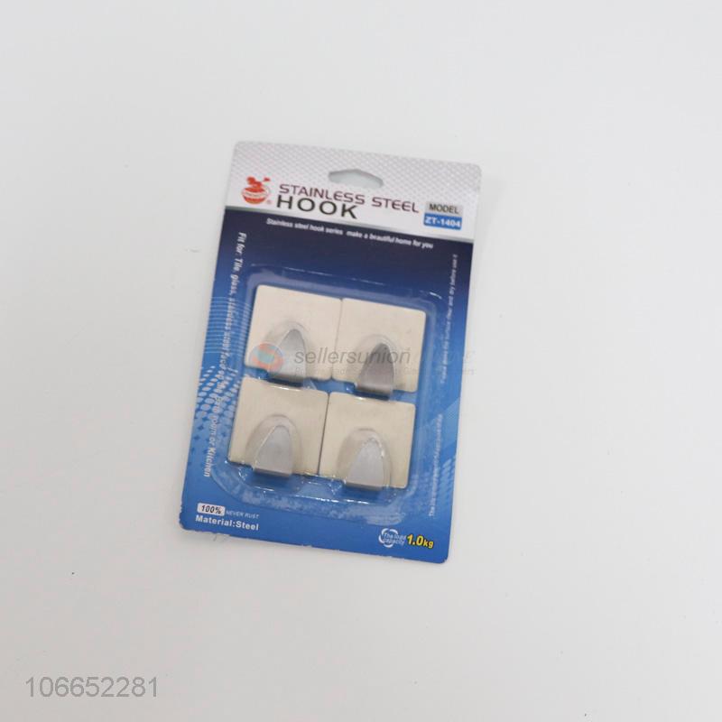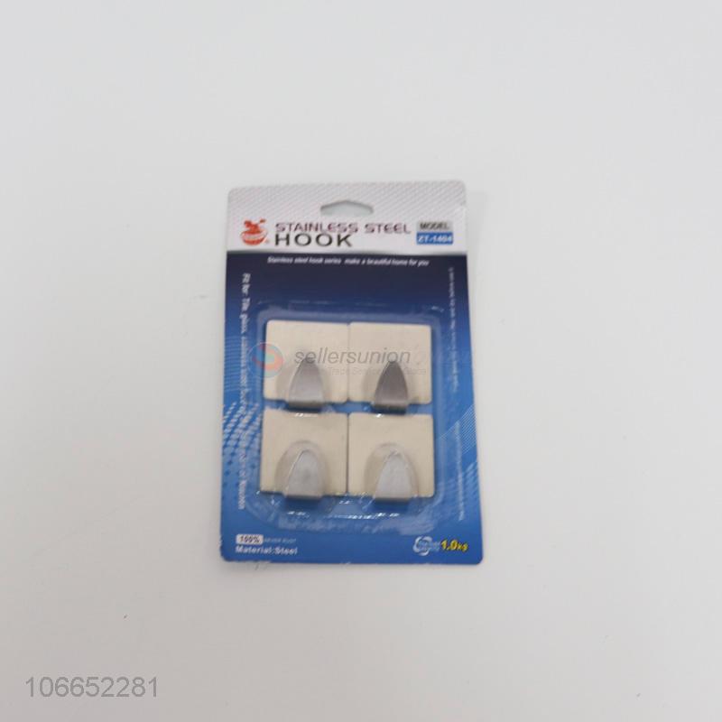 Simple design 4pc stainless steel sticky hooks square adhesive wall hooks