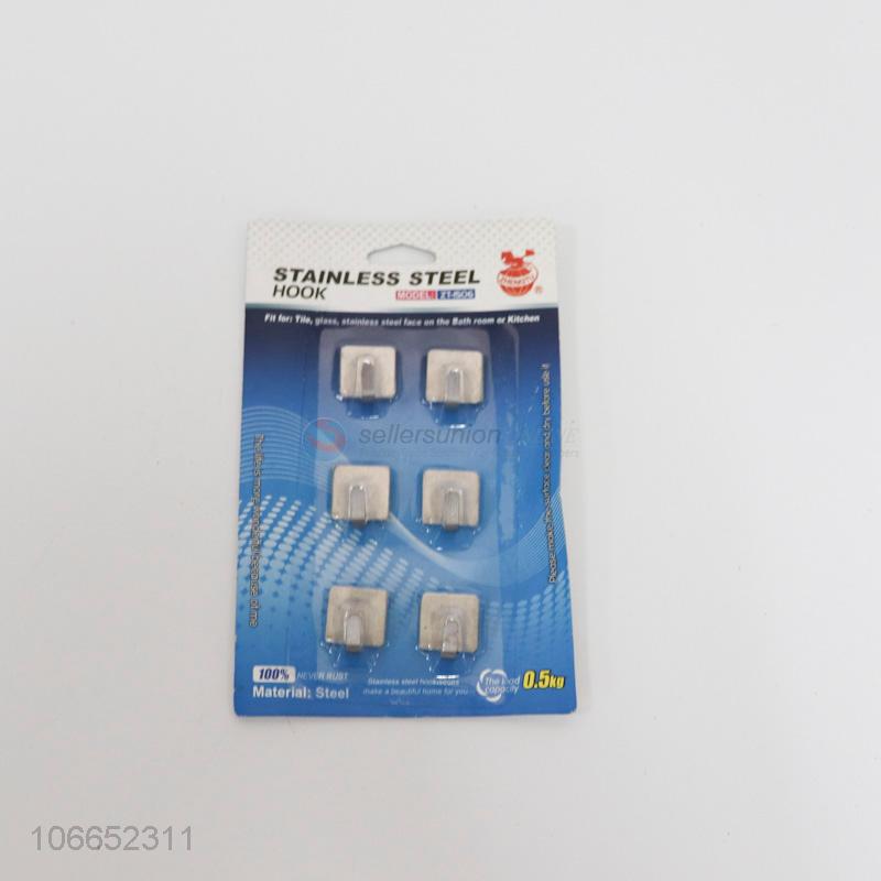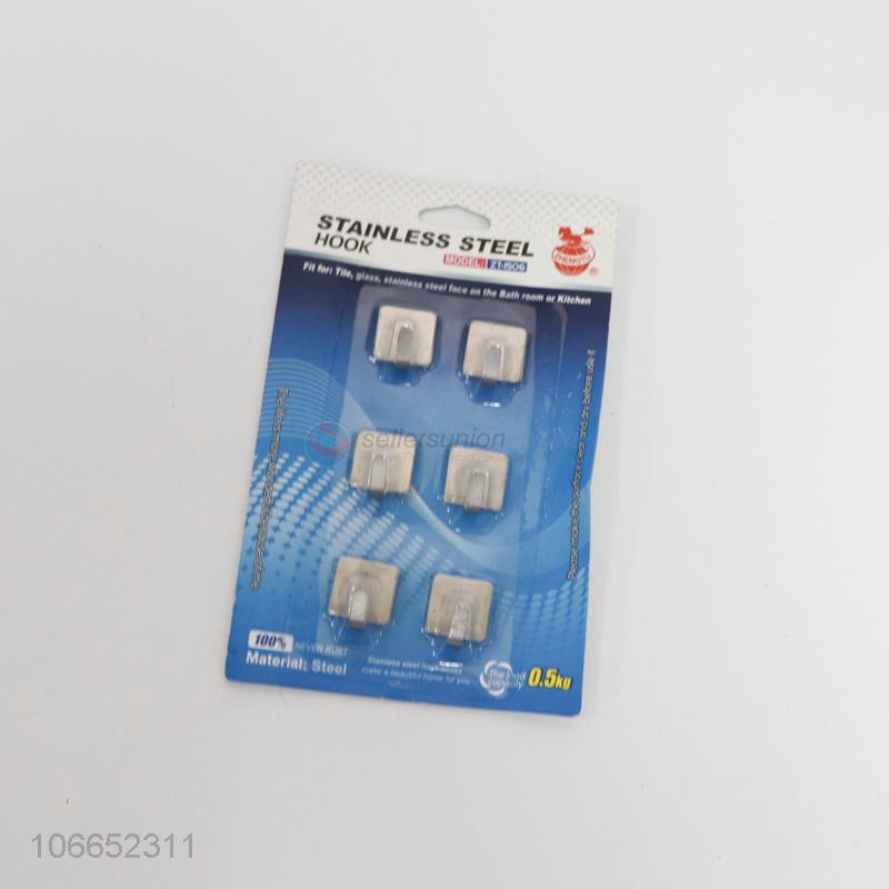Wholesale 6pc stainless steel sticky hooks sqaure adhesive wall hooks