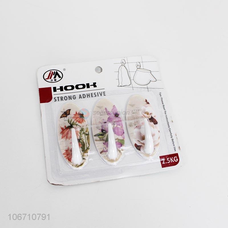 Top sales flower printed sticky hooks wall hooks
