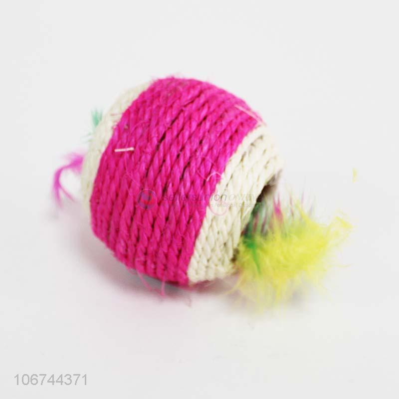 Low price funny cat toy rope ball with feather