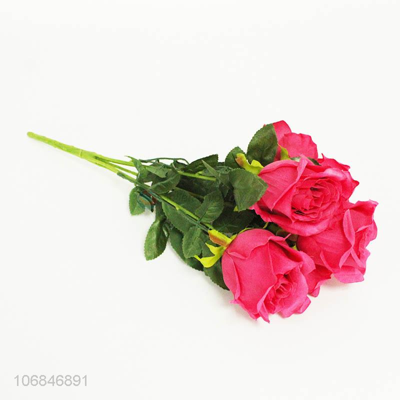 Wholesale decorative plum purple 5 heads simulation rose