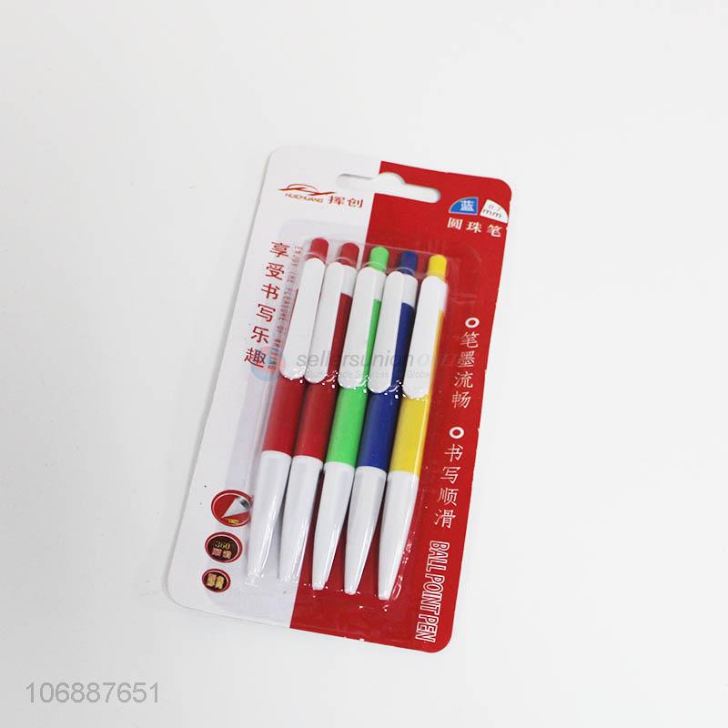 Premium quality 5pcs plastic ball-point pen student stationery