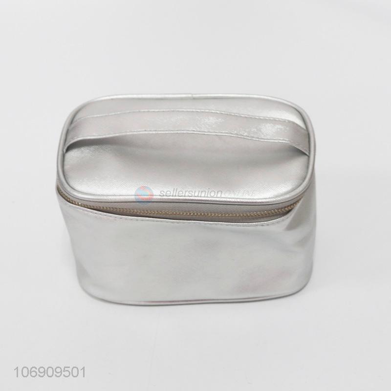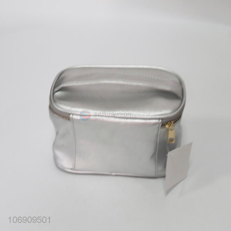 Wholesale trendy portable silver pvc travel cosmetic bag