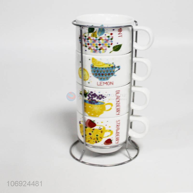 Factory wholesale fancy ceramic coffee mug set with metal shelf