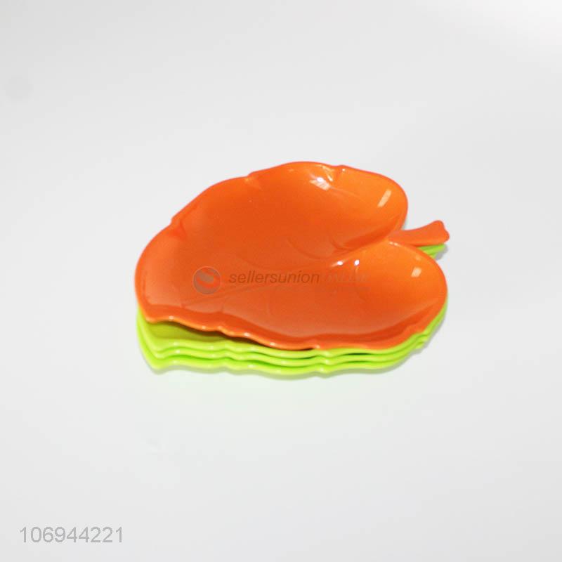 Low price 4pcs colorful leaf shape snacks dish plastic plate