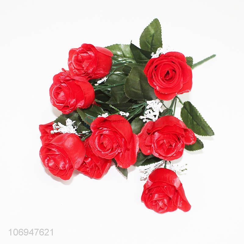 Promotional cheap decorative 12 heads simulation rose flower