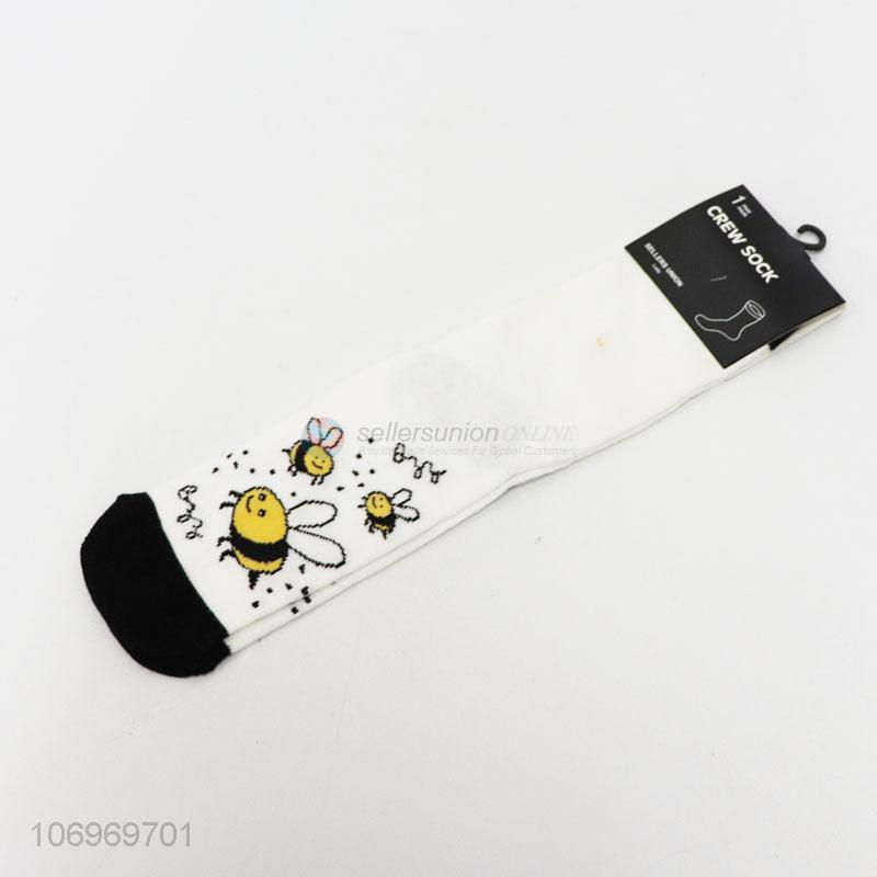 Lovely design bee jacquard women winter warm mid-calf length sock