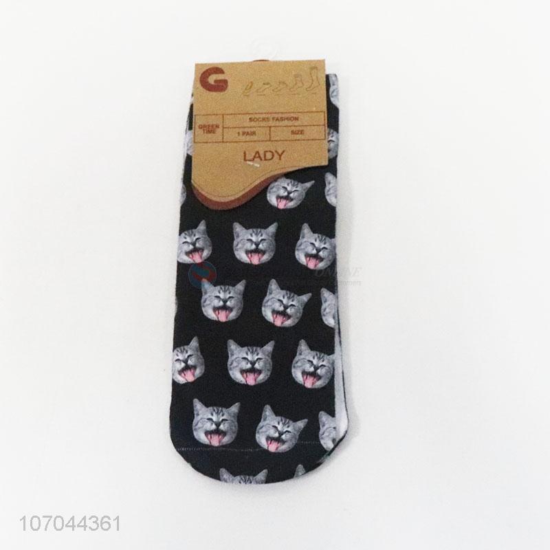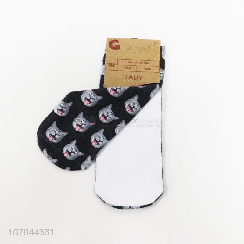 Reasonable price 3D digital printed cat pattern ladies crew socks