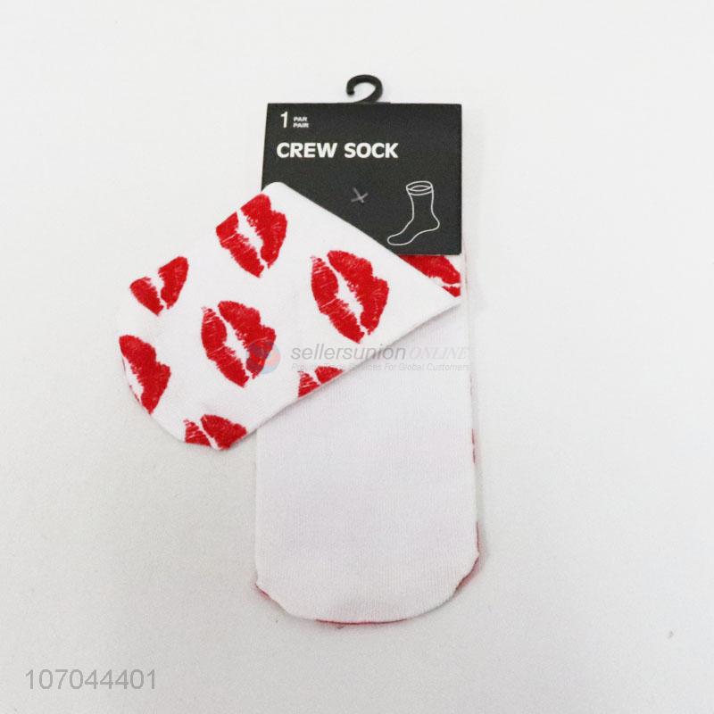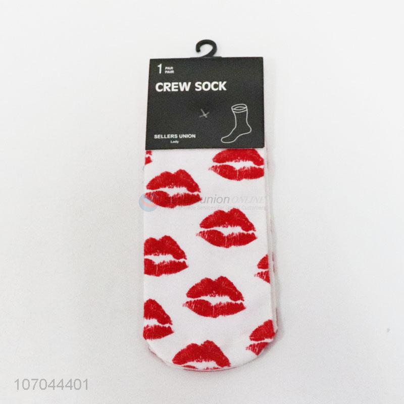 Hot selling fashionable red lip pattern ladies crew socks