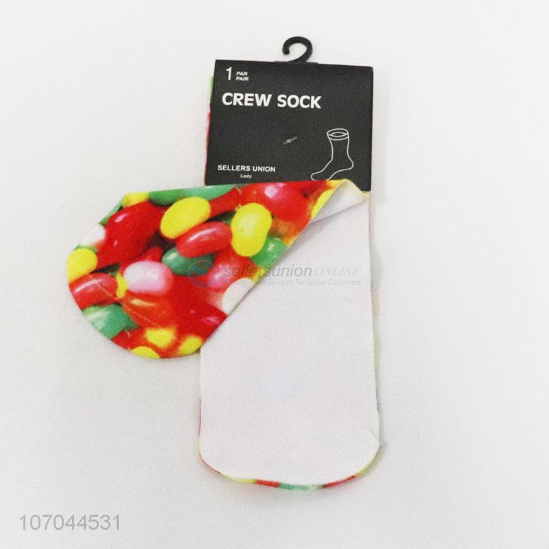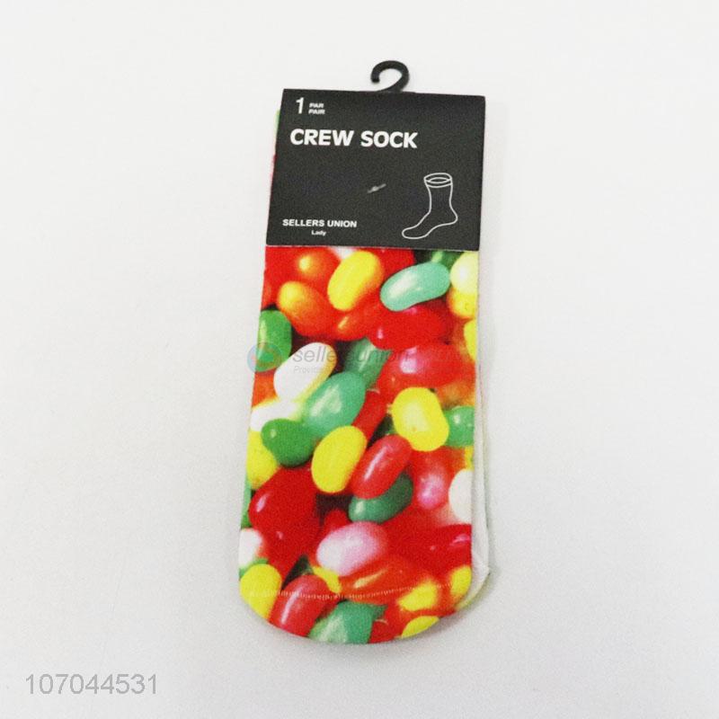 Factory price 3D digital printed candy pattern ladies crew socks