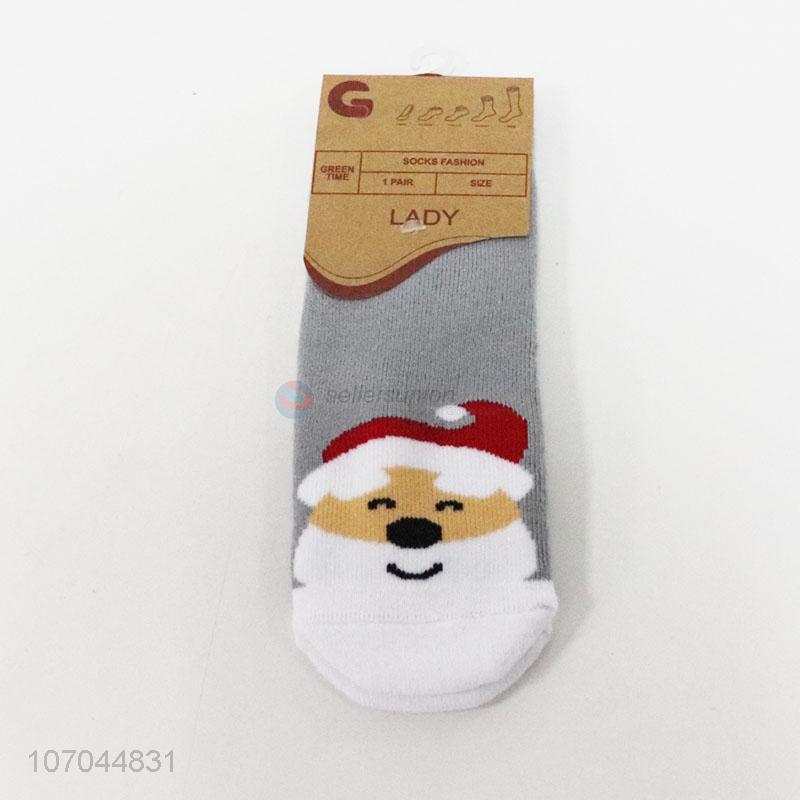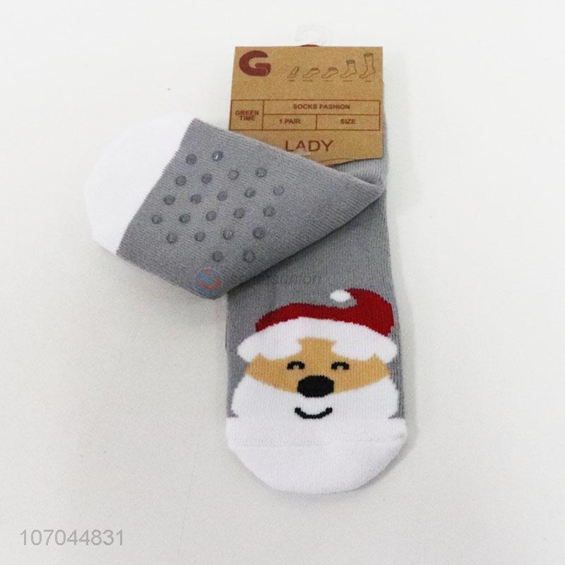 High sales girls anit-slip winter ankle socks with santa claus pattern